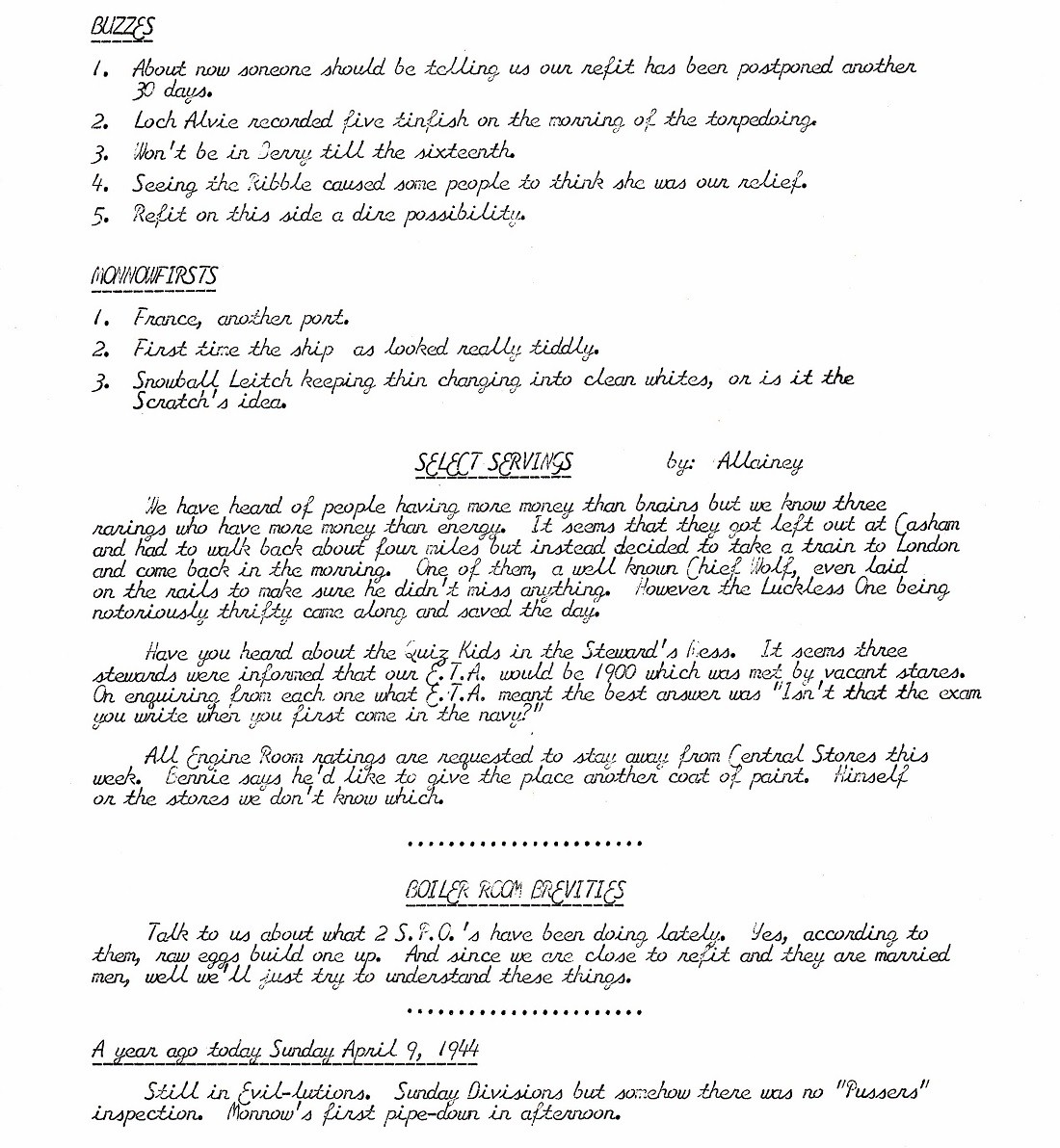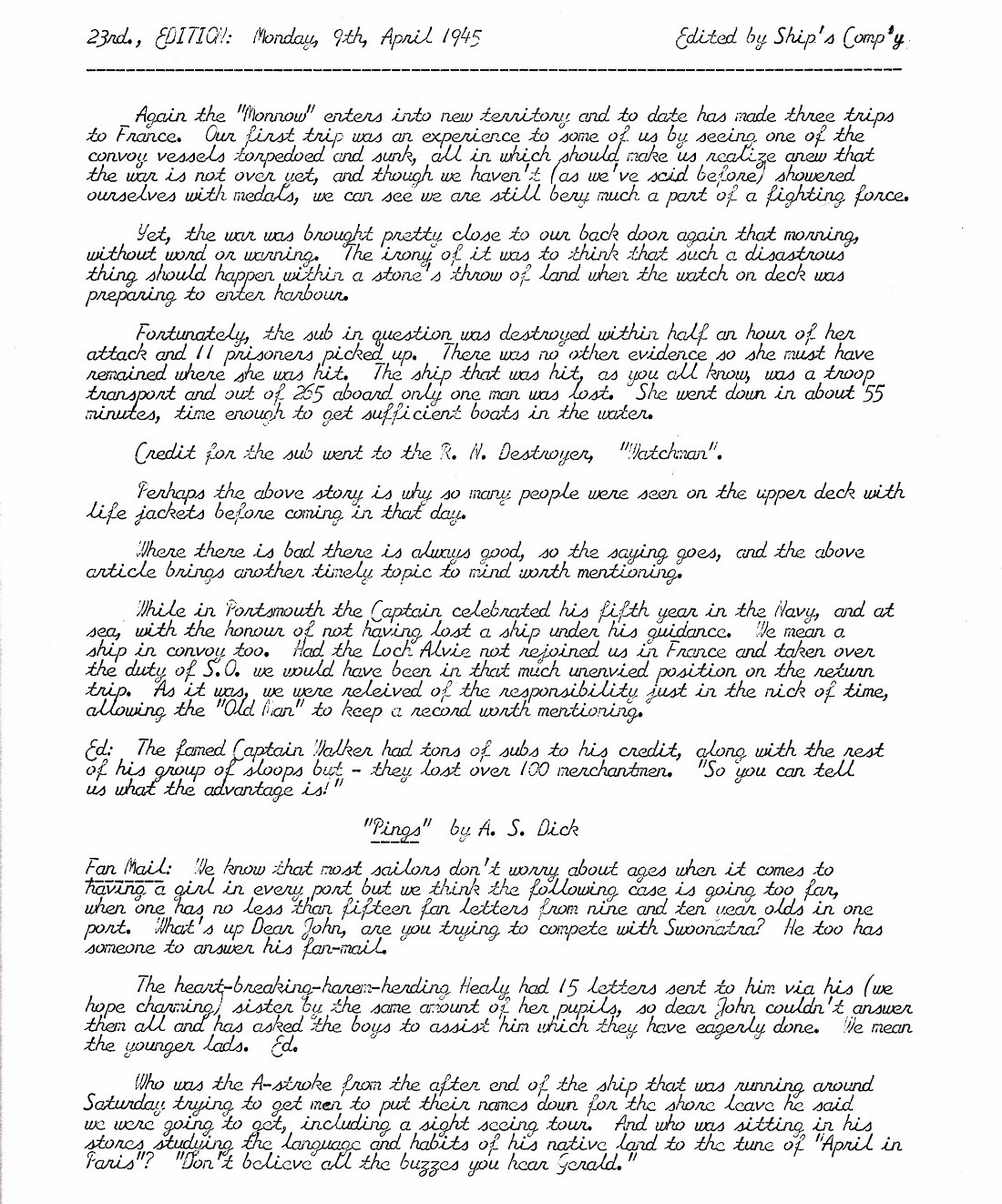 The Ship's Weekly Newspaper - HMCS Monnow K441