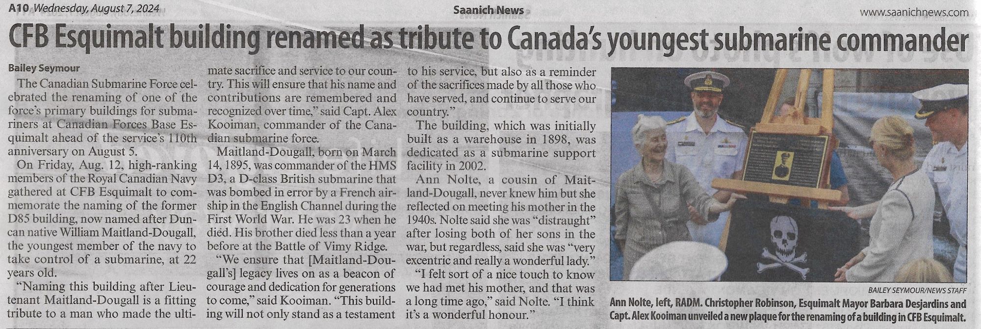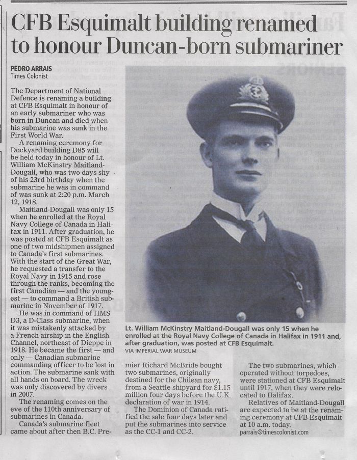 honour of Admiral Kingsmill and his service to the fledgling RCN (right) |