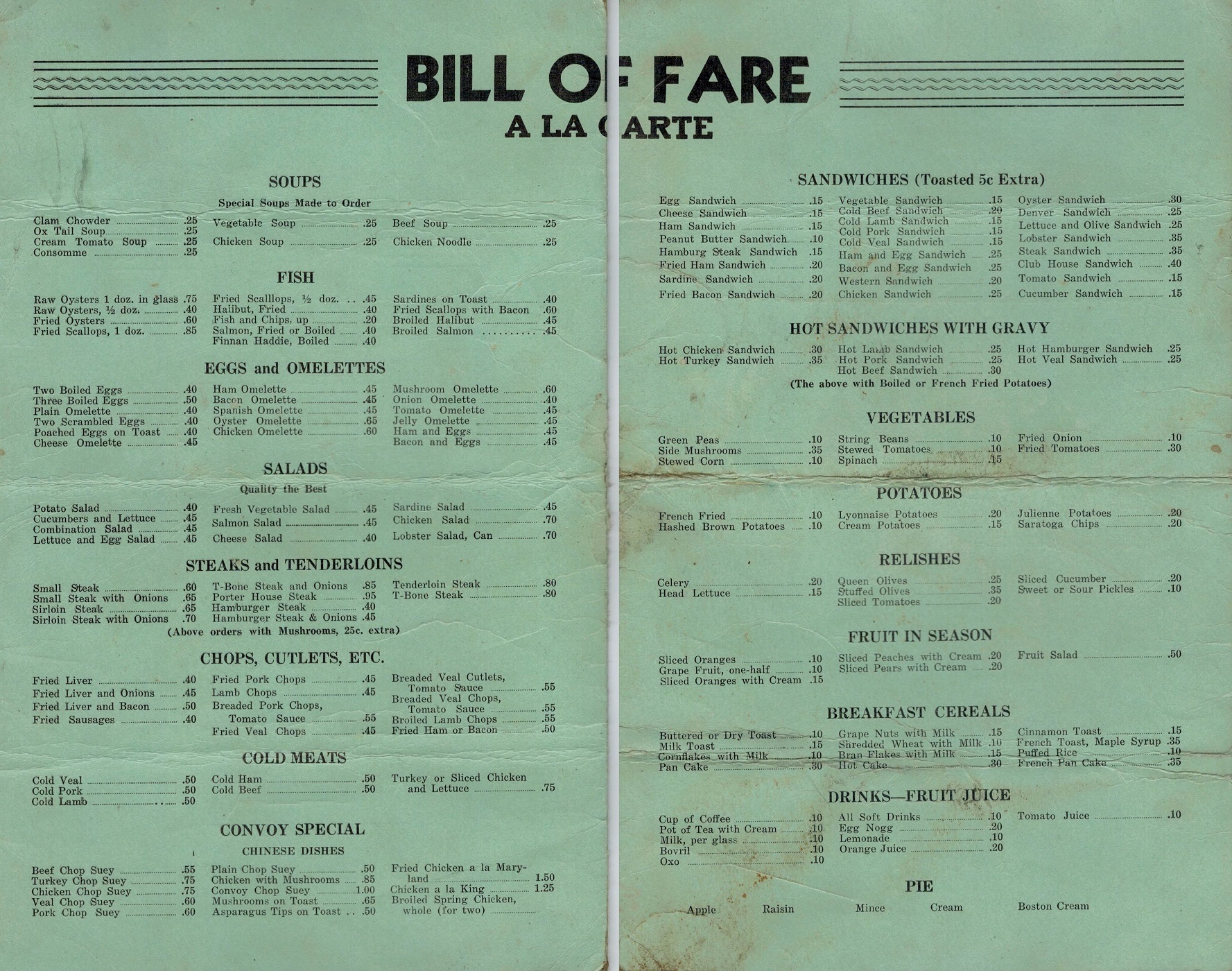 (O&S021) Menu from the Convoy Inn, Halifax, NS. From the collection of AB Daniel L. Dunbar, RCNVR. Courtesy of Dan J. Dunbar