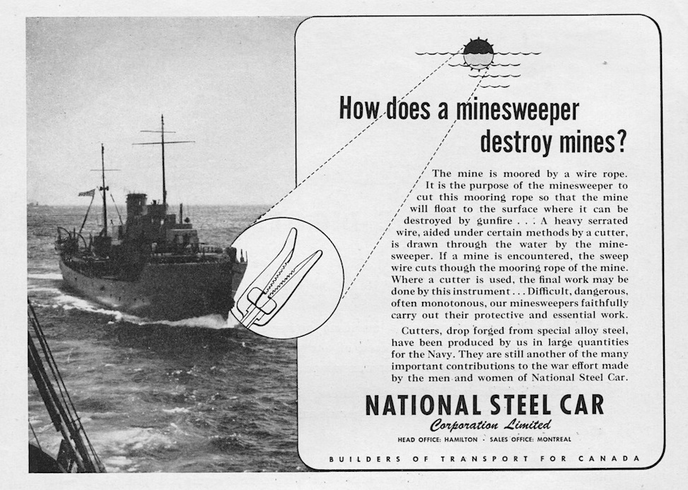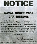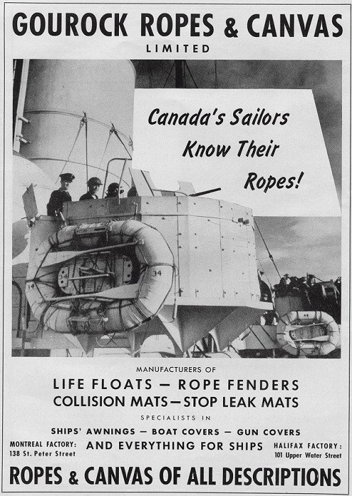 (O&S011) Wartime Ad - War Alcohol Plays Its Part. Source: Canada's War at Sea - published Montreal 1944 (O&S012) Wartime Ad - Gourock Ropes and Canvas. Source: Canada's War at Sea - published Montreal 1944 (O&S013) How does a minesweeper destroy mines? Source: Canada's War at Sea - published Montreal 1944 (O&S014) On Duty with the invasion fleets! Ad for Murphy Marine Paints. Source: Canada's War at Sea - published Montreal 1944 (O&S015) A Naval Order about wearing non-approved cap ribbons. Courtesy of Erling Baldorf