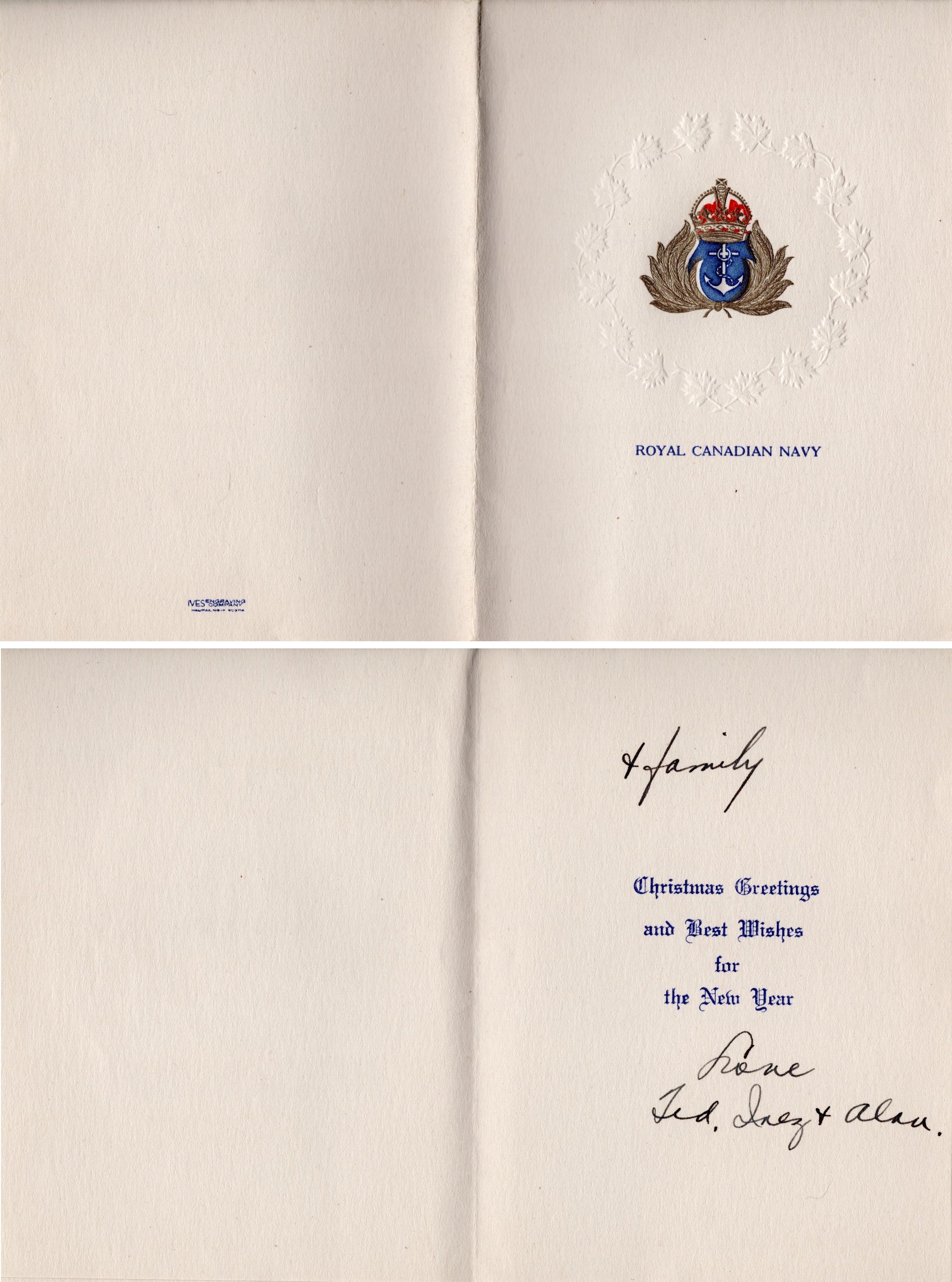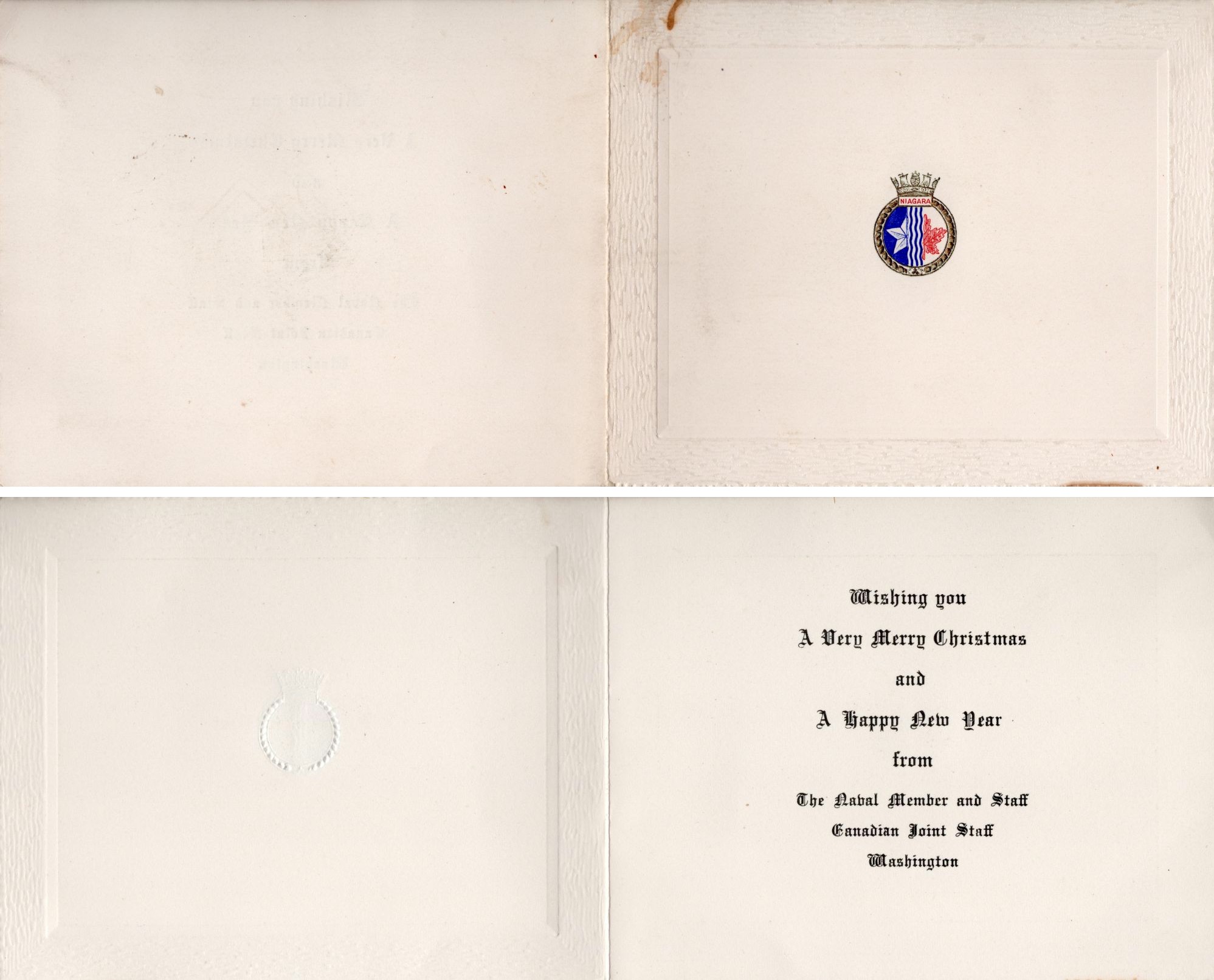 (O&S041) Royal Canadian Navy Christmas Card // Courtesy of David Upright (O&S042) HMCS CORNWALLIS Second World War Christmas Card // Courtesy of David Upright (O&S043) HMCS NIAGARA (Washington, USA) Christmas Card // Courtesy of David Upright