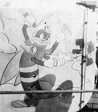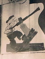 Gunshield art on ships of the RCN became prominent during the Second World War particularly on the corvettes that served in the RCN. Gunshield art varied greatly from ship to ship - incorporating crests of towns they bore the name for, cartoon characters, pin-up girls, etc. Little record was kept of these works of art and much has been lost to time. David Freeman, a retired Lieutenant Commander whose father and uncle served in the RCN throughout the Second World War, has written a book on the subject - Designs of Distinction - which helps fill in the knowledge gap on this portion of RCN heritage and history.