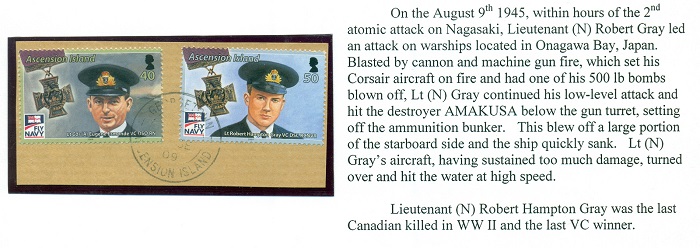 Navy Stamp Issue Commemorating Lt Robert Hampton Gray, VC, DSC, RCNVR and Lt-Cdr (A) Eugene Esmode, VC, DSO, RN being awarded the Victoria Cross.