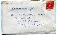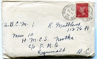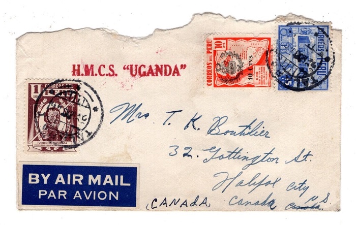 Envelope from a letter to Mrs T. K. Boutilier of Halifax from HMCS UGANDA in Peru - postmarked 1945 Courtesy of Mike Street