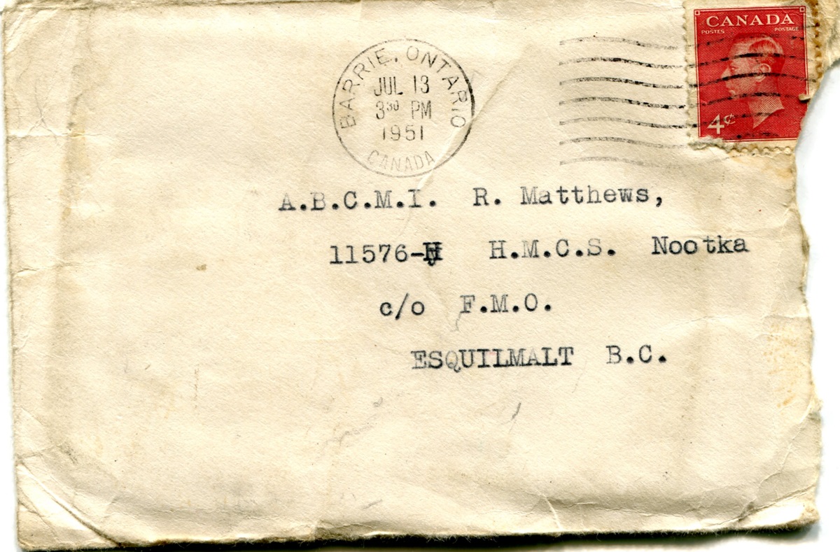 Every sailor sent letters home - in peacetime and wartime. In peacetime, the envelopes themselves could tell you a sailor's career as they were drafted from ship to ship to base, etc. During wartime it was a bit more difficult. Ships names and places had to be left off - and all correspondence was subject to review by censors - which would then be stamped as having being reviewed / approved by the censor. The censor number ie DB/512 is supposed to indicate the ship - but to date, no catalog of censor numbers has been found.