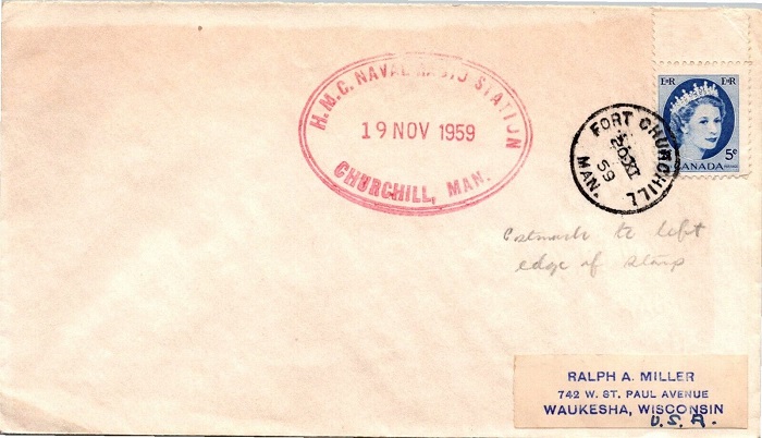 Postal cover HMCNRS Churchill - 19 Nov 1959 Courtesy of Mike Street