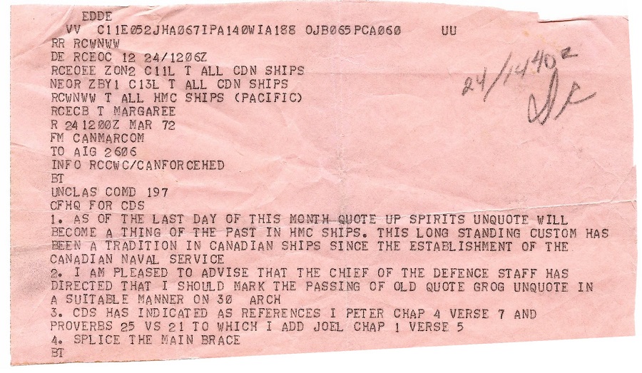 Note: Doug was the Broadcast Operator on watch when the Cease Rum Issue message came in, and of course kept a copy.