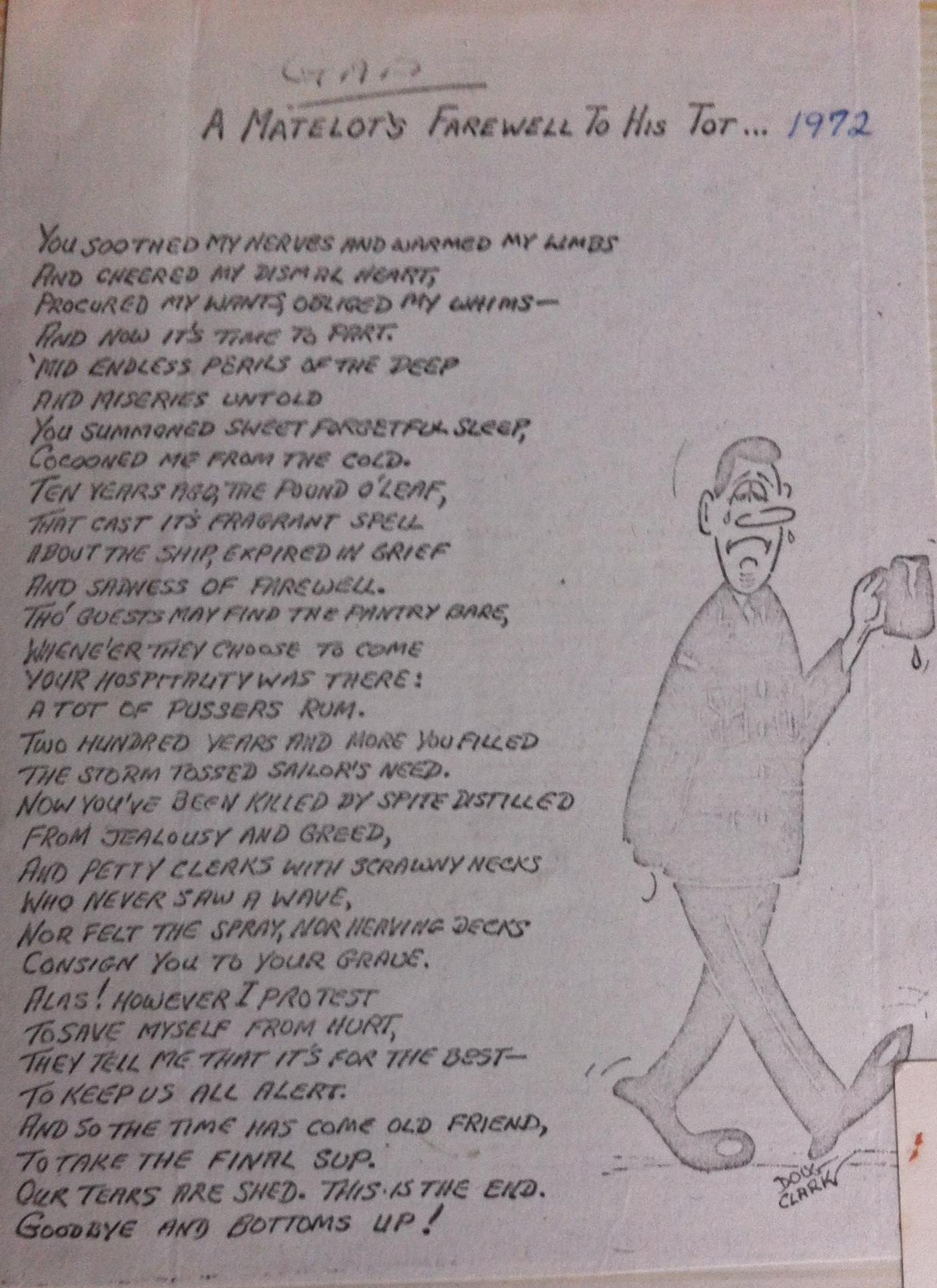 A Matelot's Farewell to his Tot . . . Author unknown From the collection of Bruce Giles, Tel, RCNVR Courtesy of Gord Giles