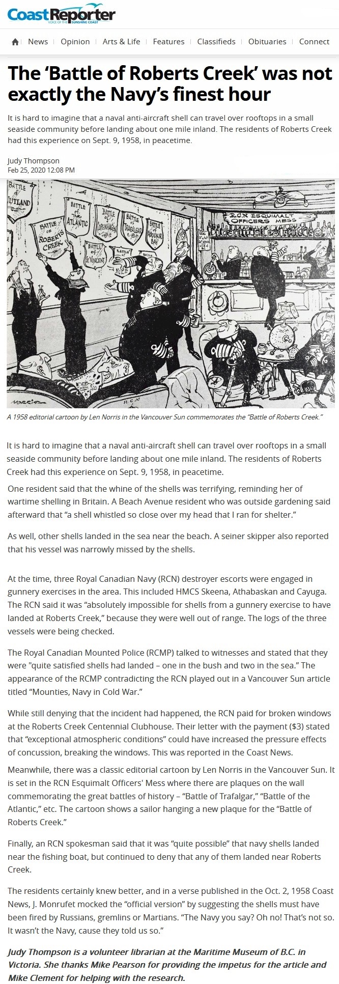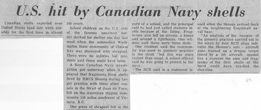 Gunnery practice hiccups - The Battle of Roberts Creek and U.S. hit by Canadian Navy shells