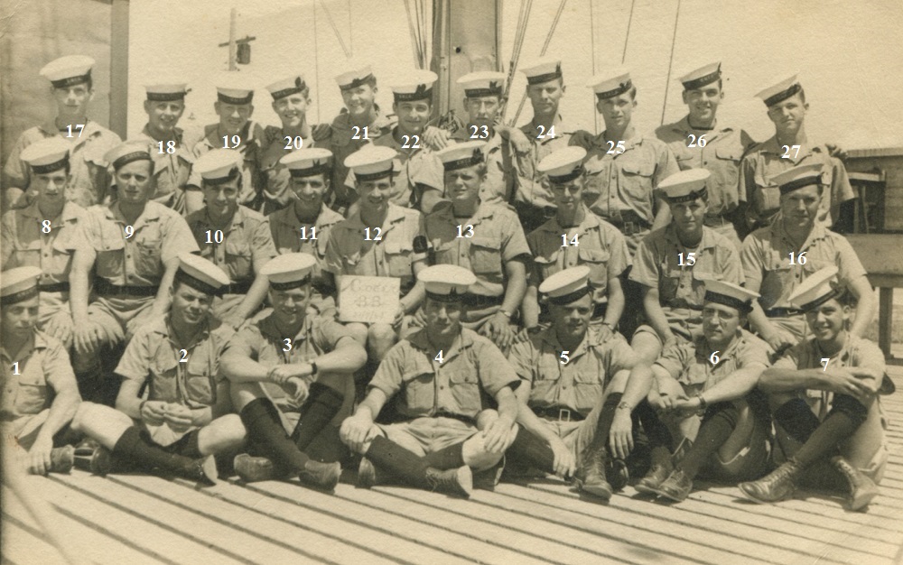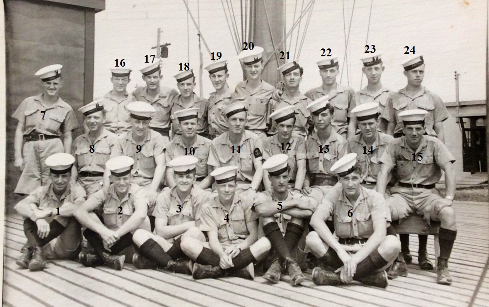 (8) Campbell, D.P. (9) Baker, J.F. (10) Simpson, B. (11) Gatenby, CPO (12) Miles, R.L., Lt (13) Hymas, CPO (14) Tomlinson, N. (15) Crossi, J.A. (16) Cook, W.O.