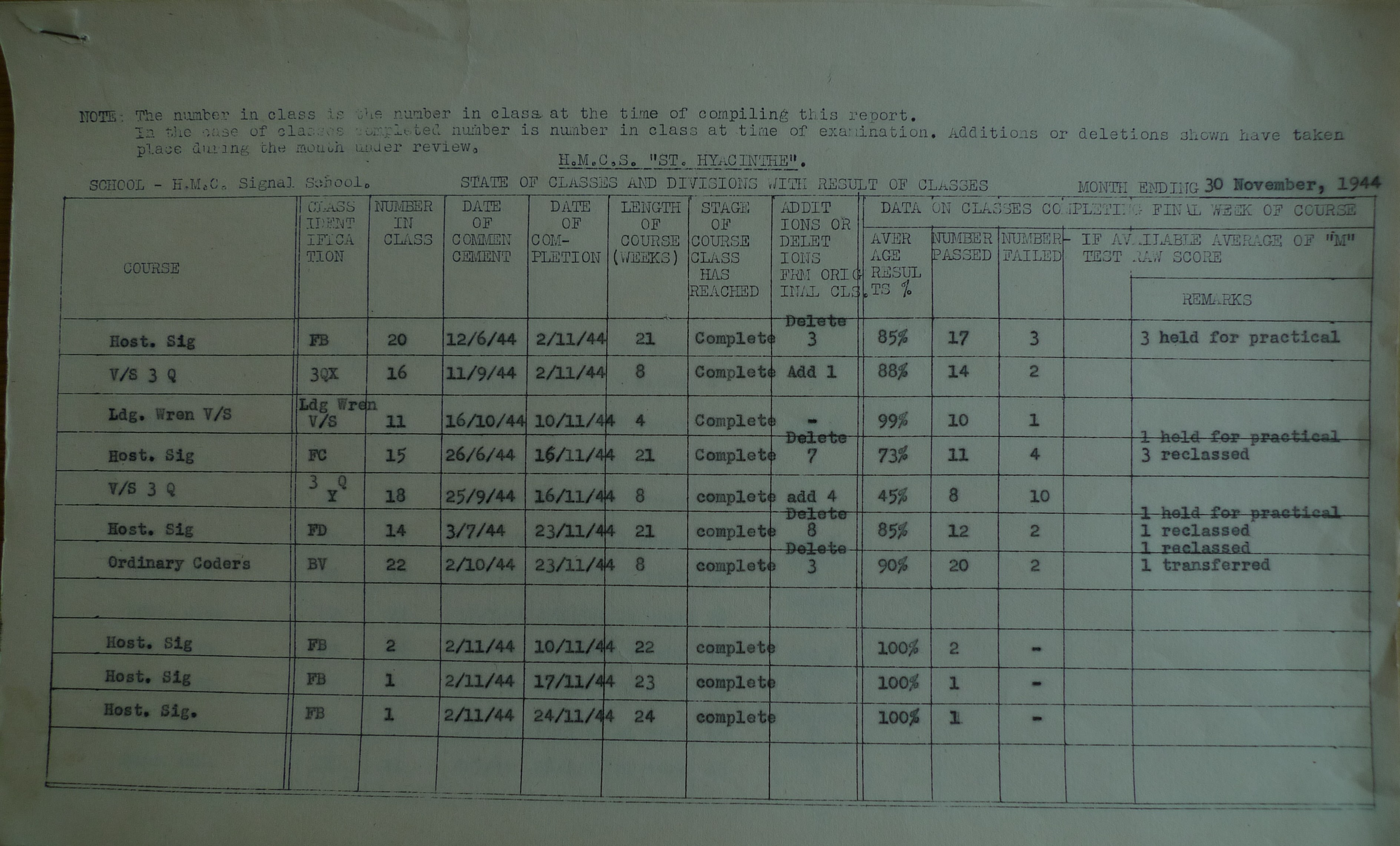 Telegraphist Course HMCS ST HYACINTYE - 01 Sep 1943 Click on the above photo to view a larger image