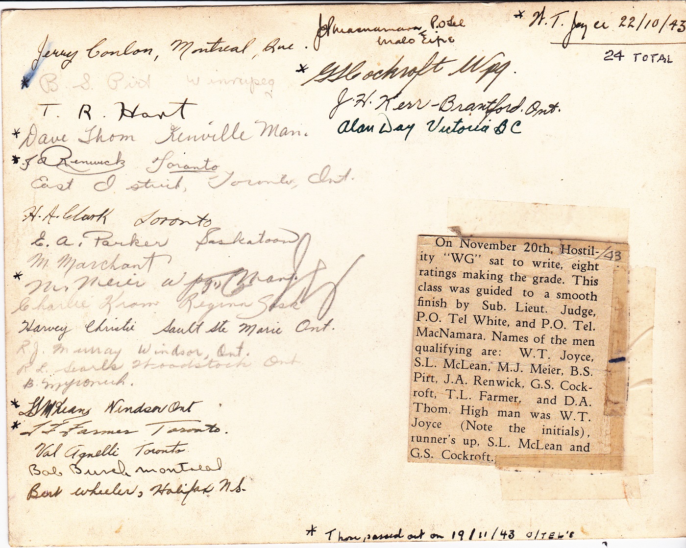 Telegraphist Course HMCS St-Hyacinthe 22 Oct 1943 Click on the above photo to view a larger image