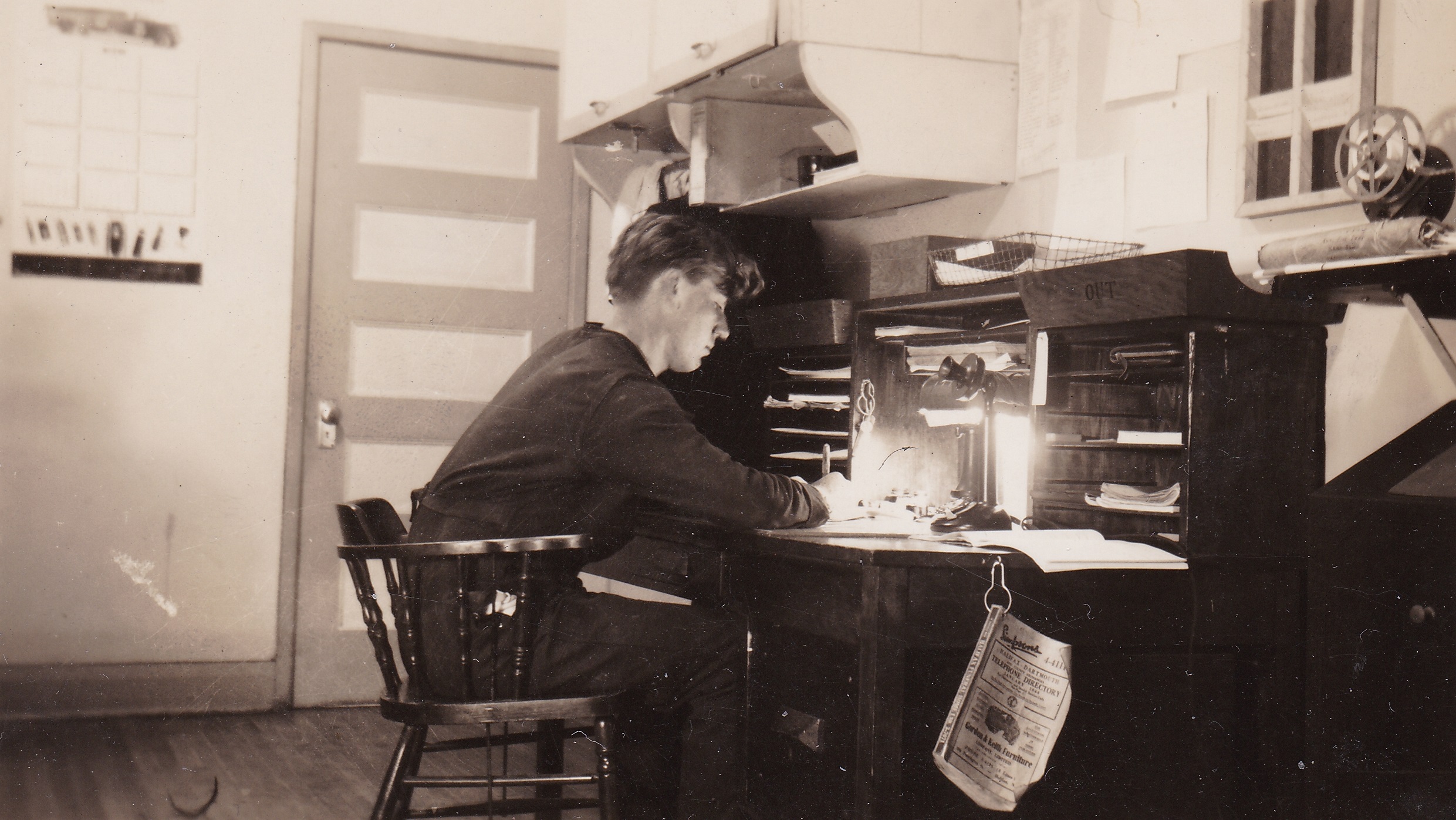 (JC22) "On duty in Fire Hall office" - HMCS PEREGRINE Fire Hall, Halifax, NS - 1944 (JC23) 500 gallon pumper and panel tow vehicle at HMCS PEREGRINE Fire Hall, Halifax, NS - 1944 (JC24) Leisure room at HMCS PEREGRINE Fire Hall, Halifax, NS - 1944 (JC25) Dorm (Barracks) at HMCS PEREGRINE Fire Hall, Halifax, NS - 1944