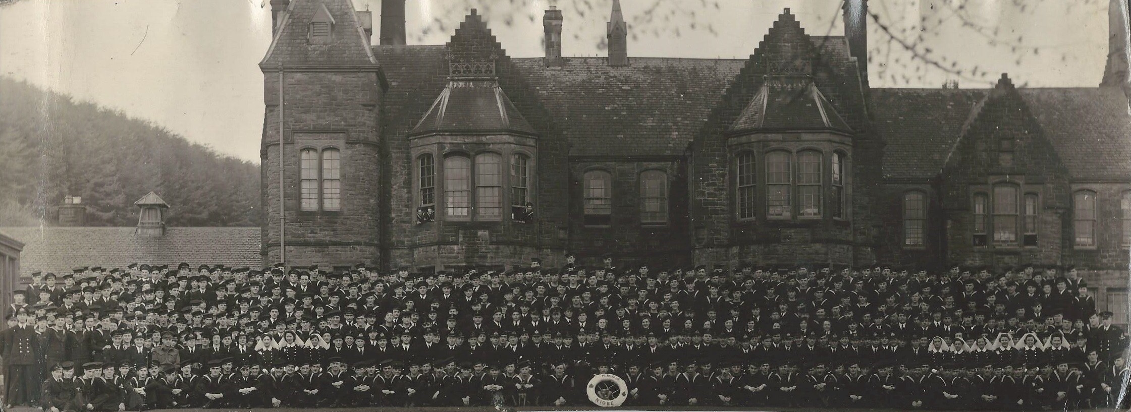 Due to the large number of sailors in the UK awaiting new ships, or waiting for ships to come out of refit, or becoming part of the Mid-Ocean Escort Force, the need to re-open an shore establishment in the UK was realized. Because Canadian ships typically used Greenock or Gourock as a berthing place, the search for a site in Scotland began. After some time negotiations for the Smithston Institute, which was the local poor house and insane asylum, a deal was struck and HMCS NIOBE was commissioned again on December 15th 1941. HMCS NIOBE would serve as a parent ship to all HMC Ships in UK waters. It functioned as an accounting base, manning pool and hospitalization centre for all RCN personnel in England. HMCS NIOBE (Greenock) was paid off on 9 February 1946.