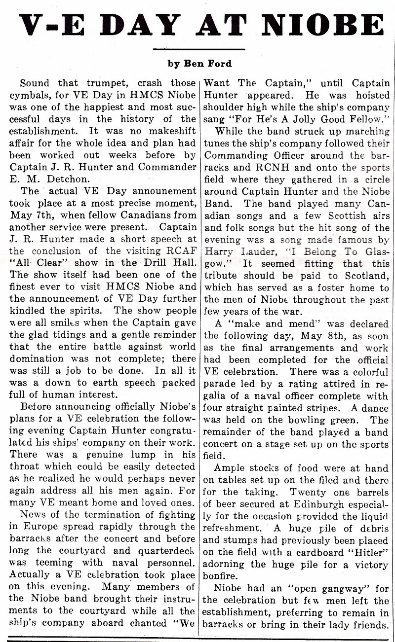 (BL13) HMCS NIOBE - Feb 1944 (BL14) Magazine article/photo - Time out for a brisk game of volleyball at HMCS NIOBE on a sunny summer day during the Second World War (BL15) Magazine article/photo - HMCS NIOBE
