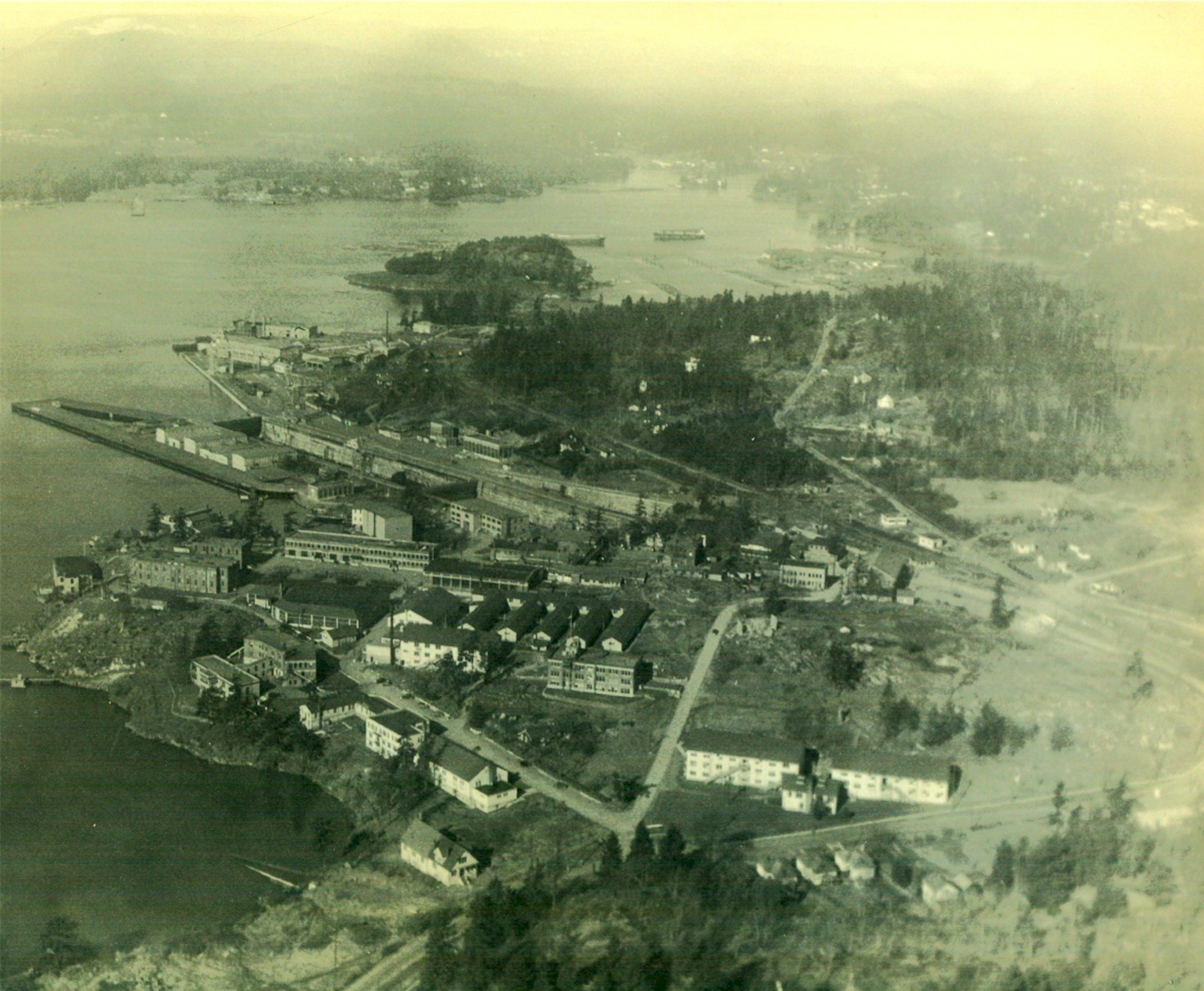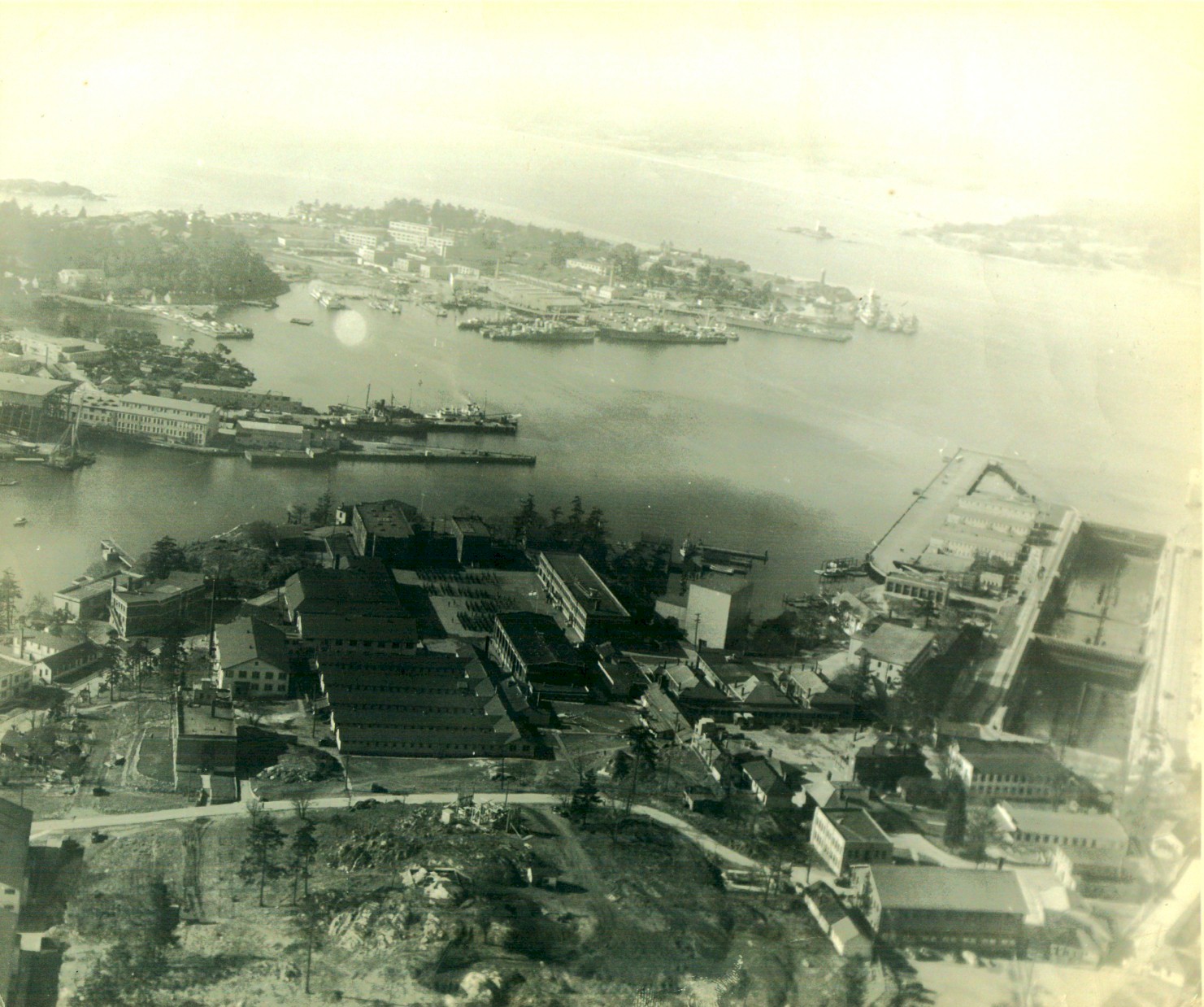 Aerial view of HMCS NADEN and HMC Dockyard