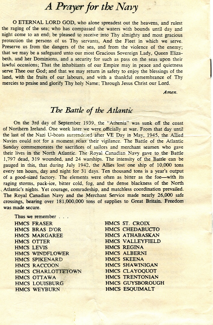 Battle of the Atlantic Sunday pamphlet - 01 May 1966 - HMCS GLOUCESTER