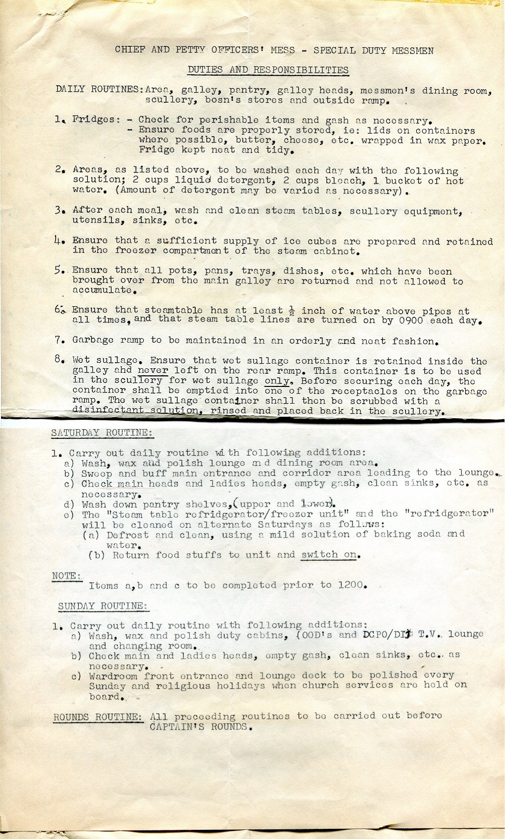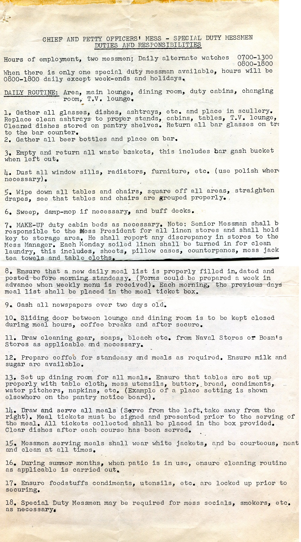 Chief and Petty Officers' Mess - Special Duty Messmen - HMCS GLOUCESTER