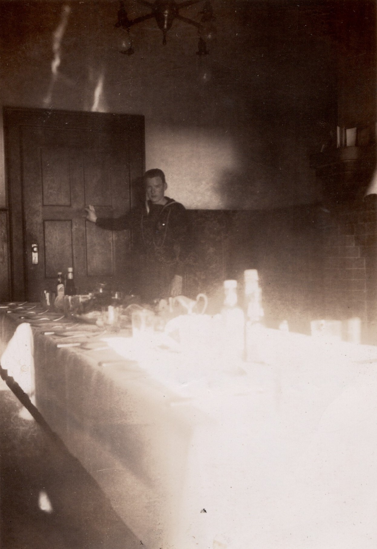 (NPW023) Norman Wilson in the dining hall of HMCS ROYAL ROADS (NPW024) Norman Wilson (top) with Ken T. and his wife to be From the collection of Norman Wilson, QR II, RCNVR Courtesy of Randy Wilson