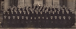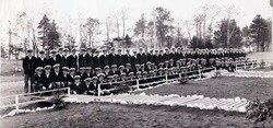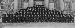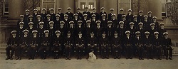 It was in HMCS Kings that young officers took at 12 week course in seamanship, gunnery, torpedo, navigation and signals before proceeding to sea. Later the course was lengthened to 20 weeks and modified with a view to placing greater emphasis on anti-submarine operations. Training of officers continued in HMCS Kings until after the war in Europe had ended. When Kings was paid off on May 19, 1945, it had graduated a total of 96 classes and turned out some 4,000 officers for wartime service in the RCN. 42 of these officers paid the supreme sacrifice. Today, the naval yardarm still stands tall in the centre of the quadrangle, and the student pub is officially named HMCS Kings' Wardroom. The ship's bell serves as the Baptismal Font in the Chapel.