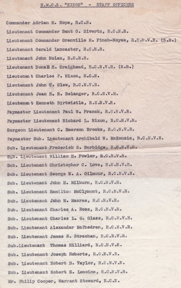 (Source: HMCS KINGS by LCdr Owen J.W. Parkhouse, RCN)