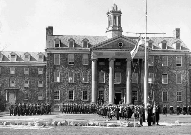 The close and amicable relationship between the University of King's College and the Navy which exists today, dates back to the early years of WWII. In May 1941, Angus L. Macdonald, Minister of Naval Services, requested the use of King's College as a Naval Officers' Training School for the summer period of that year. It was later determined "that the national emergency was such that it was necessary to use King's ... for the duration of the war." Accordingly on May 24, 1941, the Stadacona section of the RCN's Officer Training Establishment was transferred to the University of King's College, and a few months later, on October 1, 1941, it was commissioned HMCS Kings.