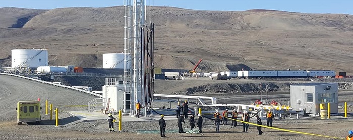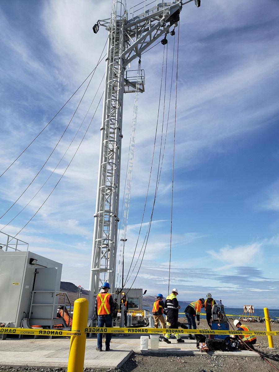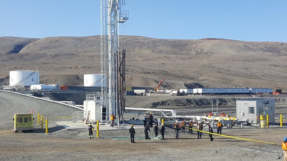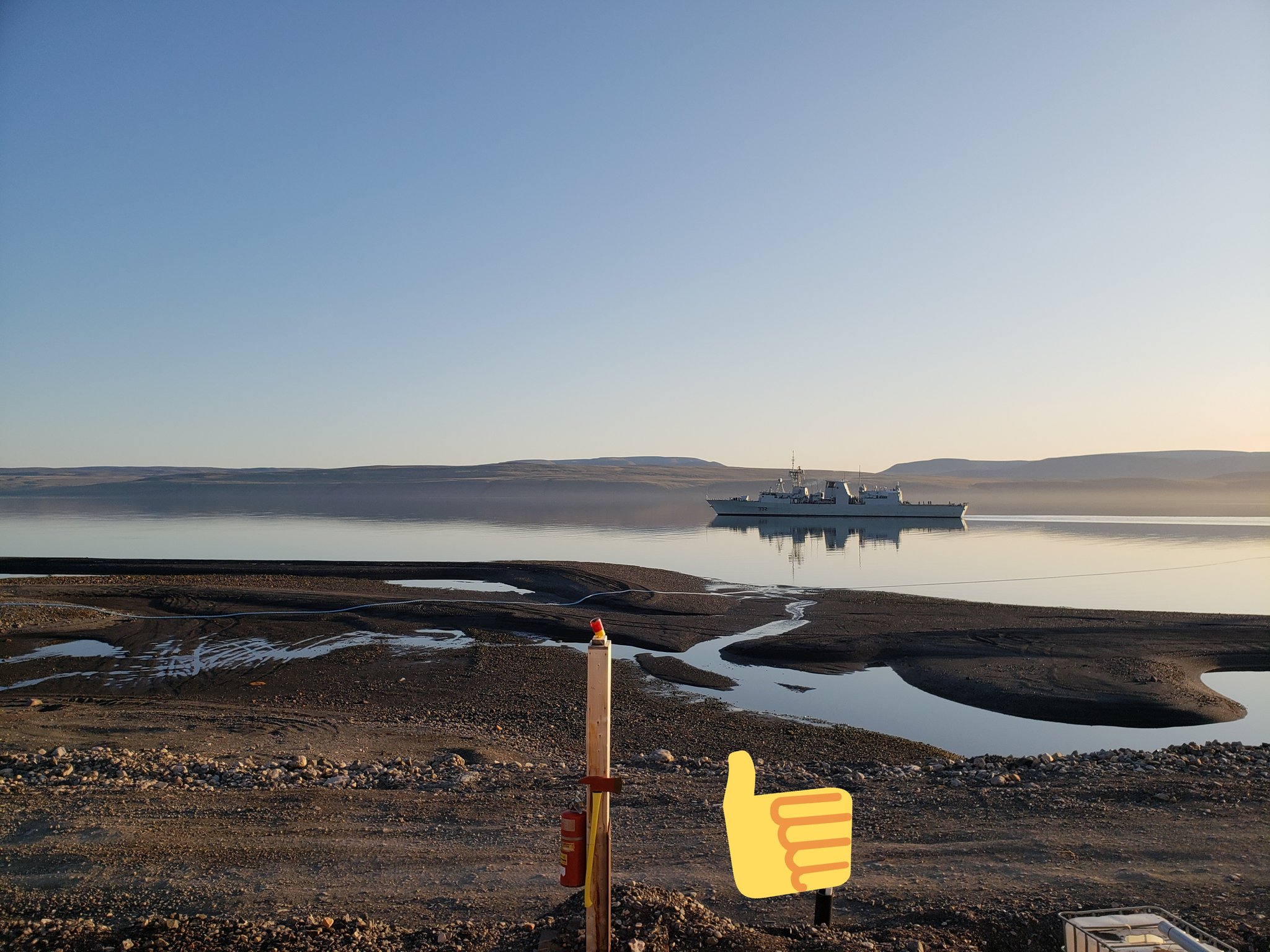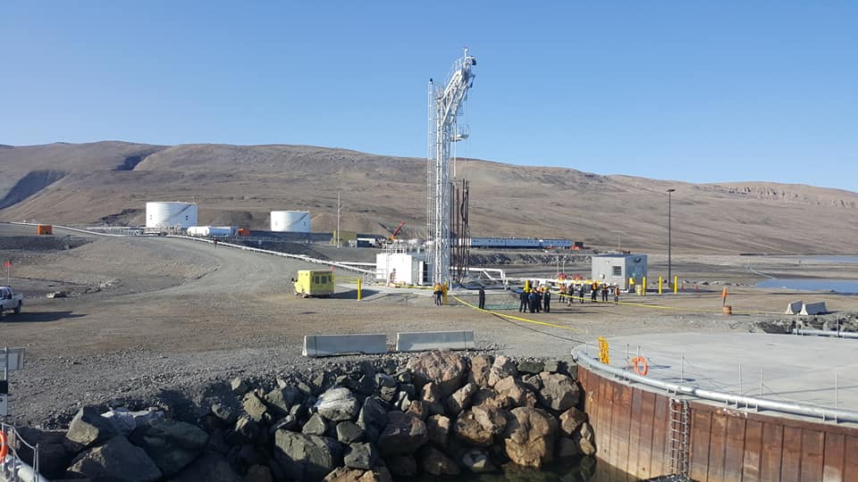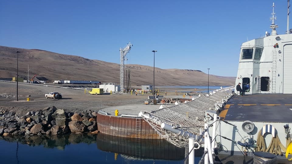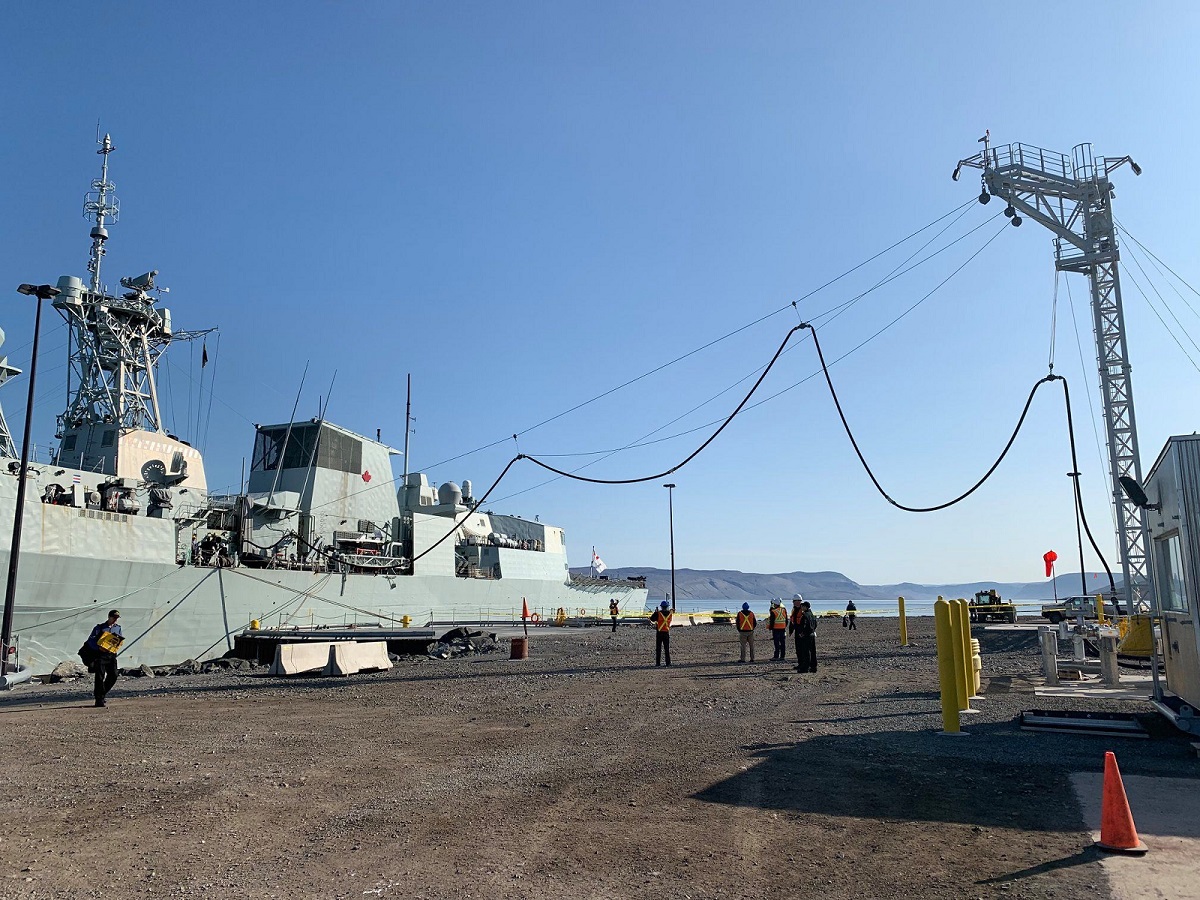 HMCS VILLE DE QUÉbec 332 at the Nanisivik Naval Facility Aug 2019 conducting dry testing of the fueling equipment