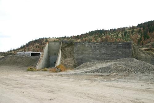 The Naval Ammunition Depot Bunkers, consist of 22 partially-buried concrete bunkers grouped along a winding linear access road approximately two miles west of downtown Kamloops. Located on a flat bench at the edge of a steep escarpment, the site is adjacent to an industrial area on McGill Road. Each structure is comprised of a windowless one-storey concrete storage space, entered through steel entrance doors and enclosed, to the full height of the storage space within, by earthen blast protection walls.