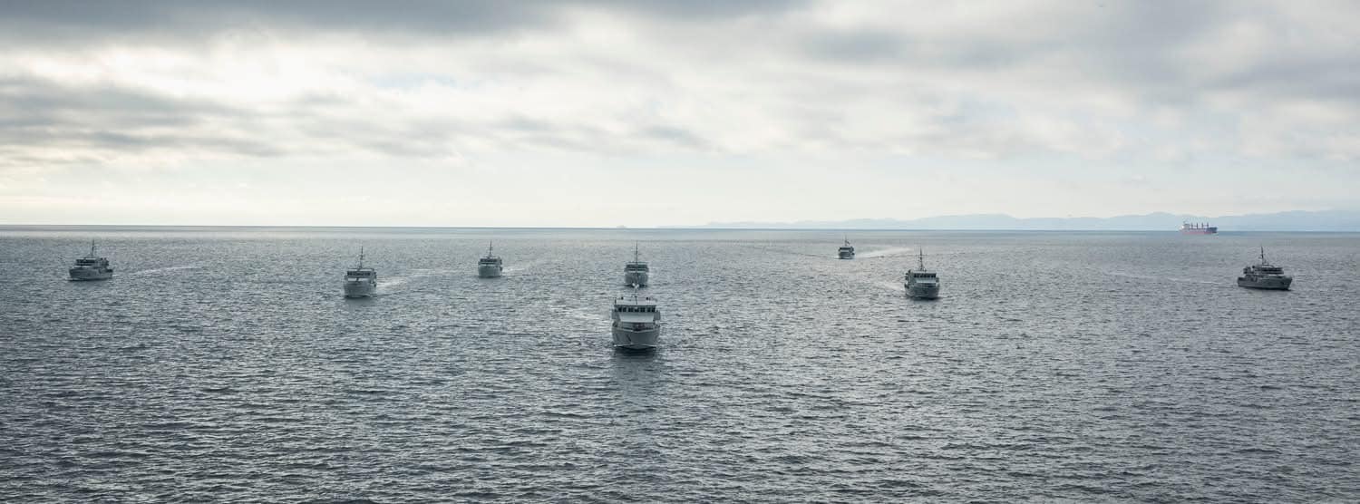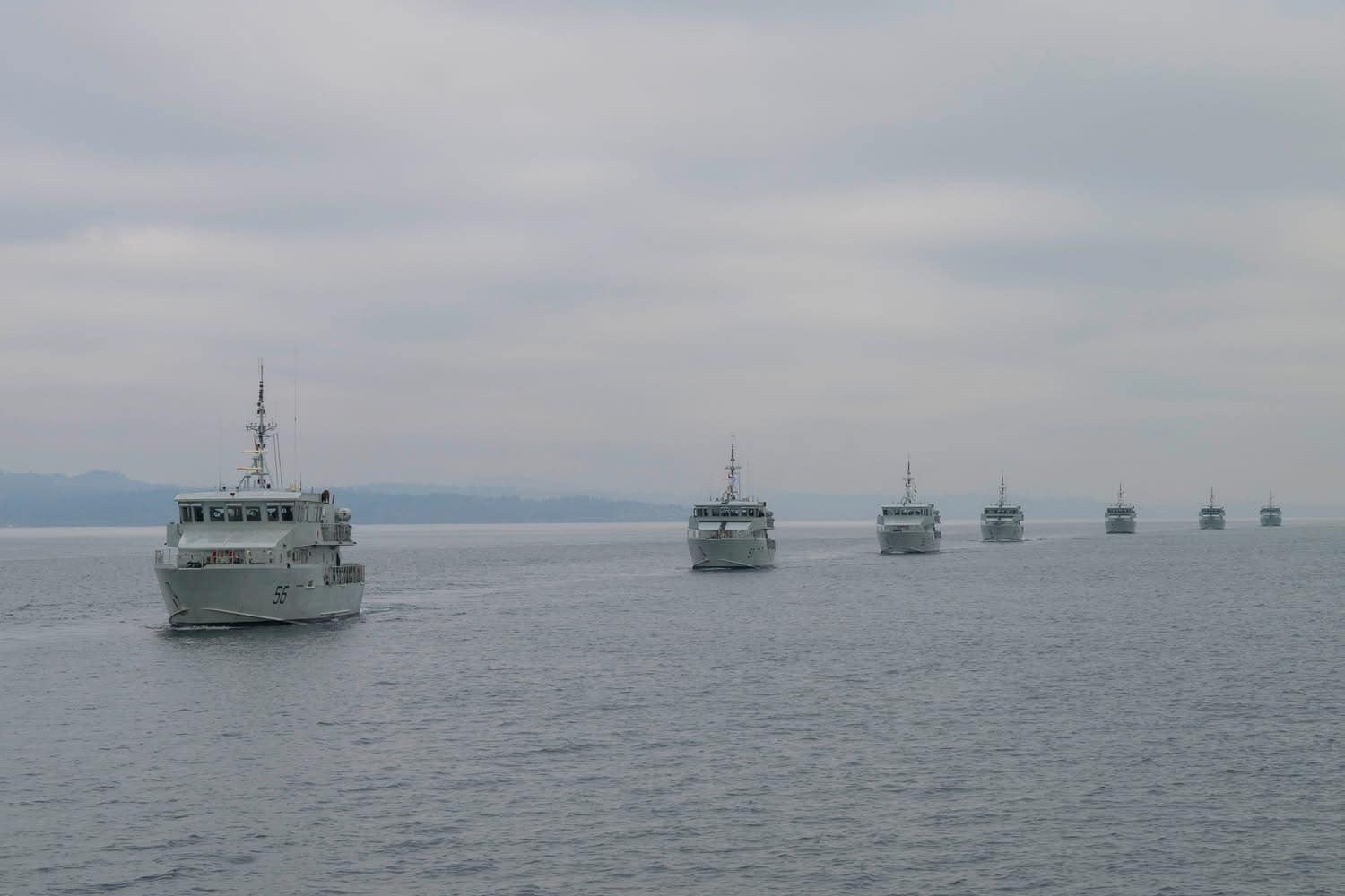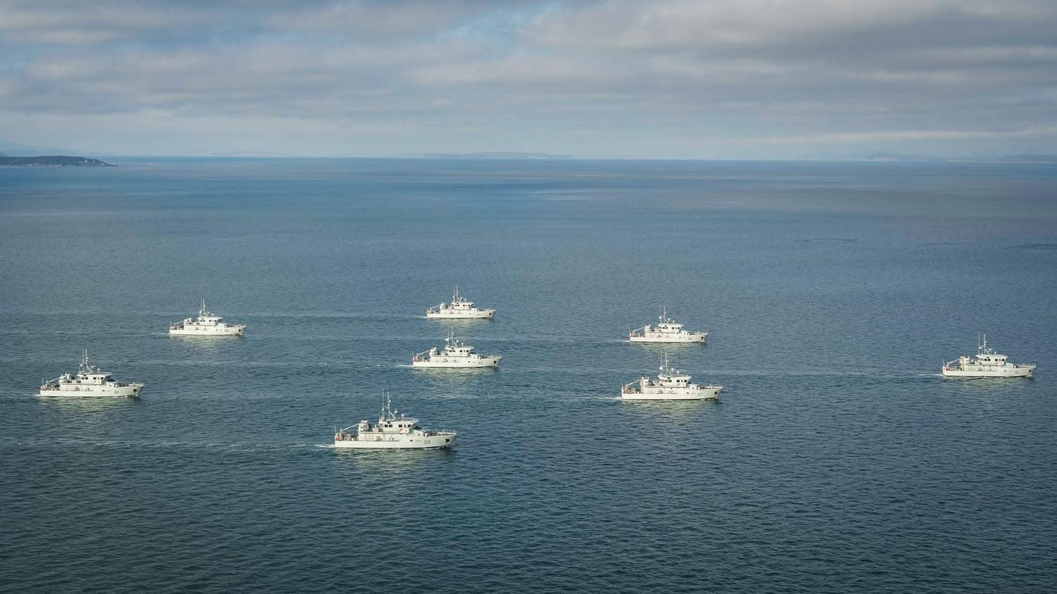For the first time in class history, all 8 Orca Class vessels conducting maneouvers together PCTU Photo Ex 2025 Photo source: Patrol Craft Training Unit Facebook page DND / RCN photo
