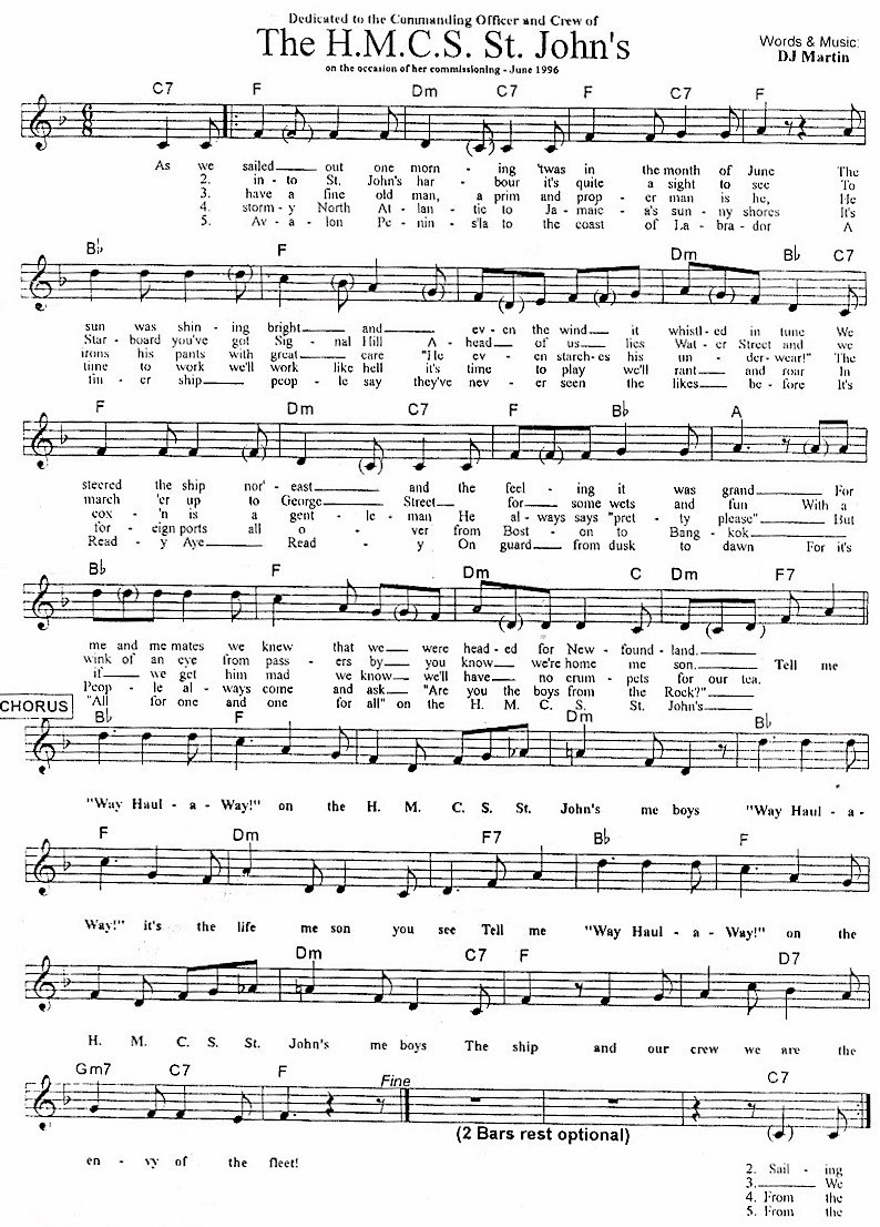 Second World War. The melody was transcribed from a recording by HMCS YORK